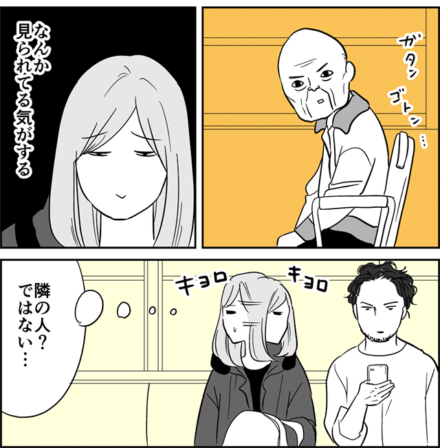 電車内でガン見してくる謎のおじいさんに困惑(2/2) 本日2度目の更新です。1度目の更新はこちら→電車内でガン見してくる謎のおじいさんに困惑(1/2)都電荒川線の車内で、顔を完全にこちらに向けて、ガン見してくるおじいちゃんに出会った私。しかし全く見覚えがない人で…? 隣の人も顔を上げたけど、すぐスマホに目を落として ... 2019/02/08