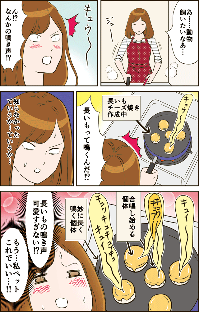 めっちゃ可愛い声で鳴いた。こんにゃくも鳴き声可愛いらしいから、今度一瞬飼ってみる(そして直後に美味しくいただく)。