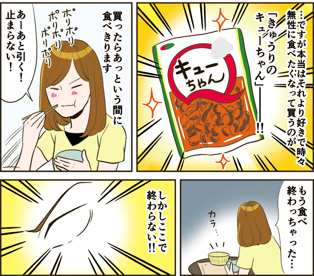 大好きなきゅうりのキューちゃんをあっという間に一袋食べきってしまった私!その後やることと言えば…!?