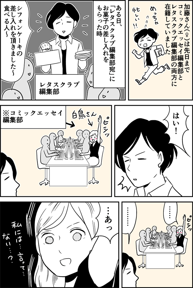 うん、違う編集部だけど同じフロアで島も近いし、間違えることも…いやコミックエッセイ編集部の方で手ピシッて上げてるの、白鳥さんだけだったって言ってたな…