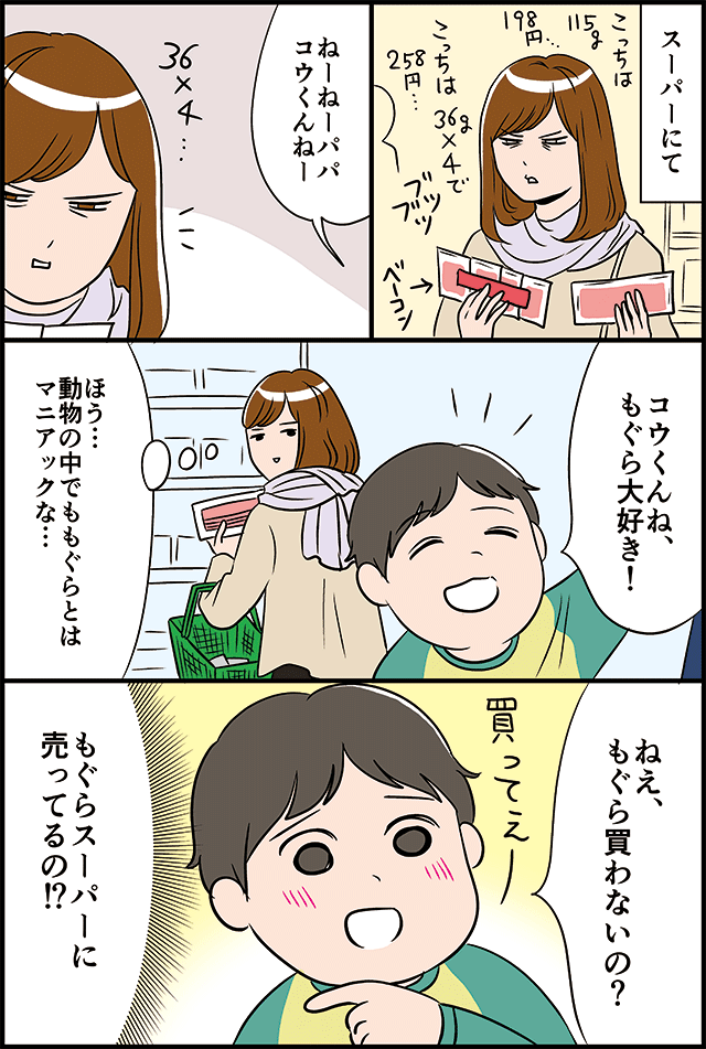 うちの3歳の子供も、「もぐら、もぐら、もぐら…まぐろ?」と言っていたので、子供にとってはもぐらとまぐろは言い間違いやすいのかもしれないですね!(笑)