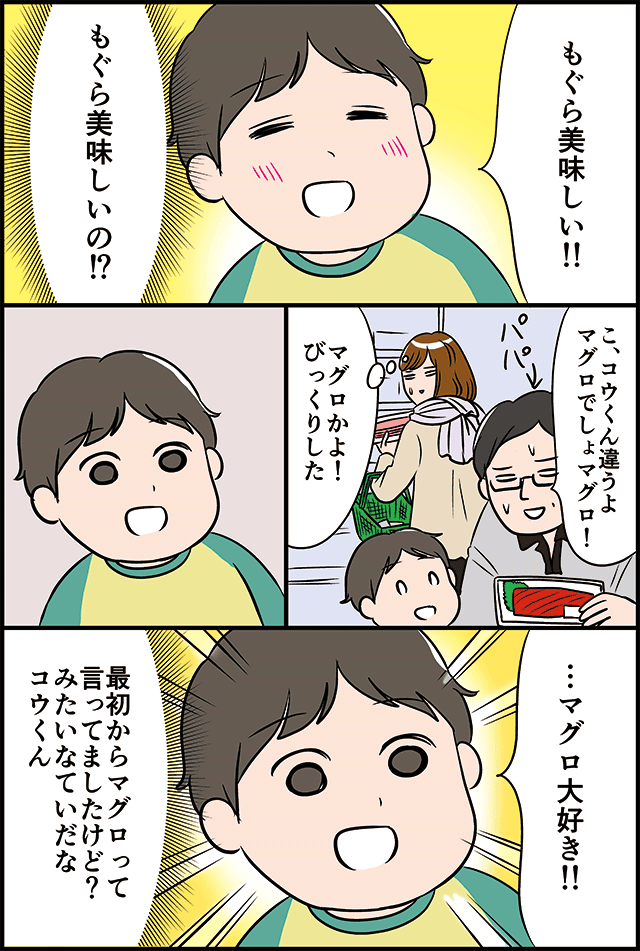 (マグロ美味しいよねコウくん!)