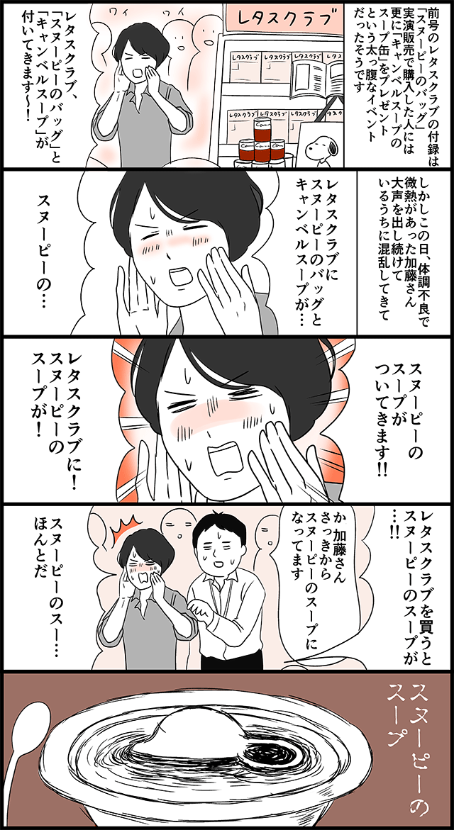 スヌーピースープも、クールな印象の加藤さんがスヌーピーLOVEな場面も想像するとシュール!
