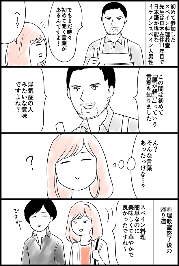 連載の2回目、3回目の時に告知できなくてごめんよ~ 2回目はスペイン料理教室に参加した話、3回目は生春巻き回でした。 2回目のスペイン料理教室の先生は、イケメンスペイン人男性でした。連載の中では描き切れなかったのですが、こんなことがありました。
