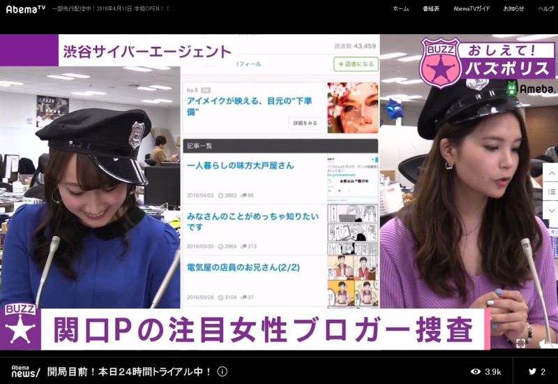 先ほど、「Abema tv」の中の、「AbemaNews」内コンテンツ、「おしえてバズポリス」で 私のブログが紹介されました~サイバーエージェントさん社員の関口Pさんが、注目ブロガーとしてかなりがっつり紹介して下さいました。「まあ~ほんとに面白い!」って言ってもらえた!嬉しい!