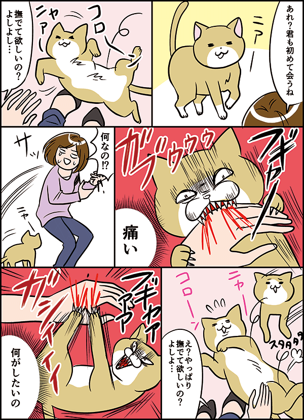 猫を飼ったことがないので全く分からないのですが、これ触り方がお気に召さなかったやつ?それとも、そもそもすり寄って来たからって、触っていいなんて言ってないんだからね!ってやつ?