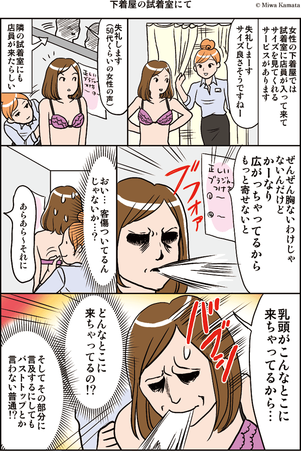 隣の店員に当たらなくてよかった… 『あらあら~乳輪が・・・』とか『色が・・』とか言われかねない。