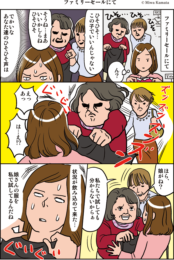 3コマ目 赤い服のおば様に便乗するっていうかめっちゃ加担してるっていうか