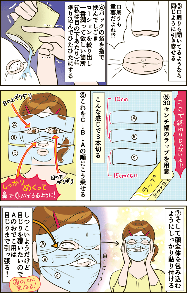 貧乏性の私のローションパックのやり方(4/4) 今日は前回の続きです。前回のマンガをまだ読んでない方は、先にこちらからどうぞ。↓貧乏性の私のローションパックのやり方(3/4) 読んだ方は続きへ↓ お付き合い頂きありがとうございました!ほぼ同じことをしている方も多いですね~仲間~!ラップはまだしたことがないって ... 2018/11/13